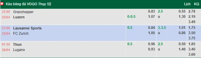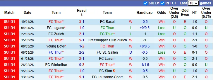 Nhận định bóng đá Thun vs Lugano, 1h30 ngày 26/4/2026 tại giải VĐQG Thụy Sĩ. Dự đoán, phân tích tỷ lệ kèo châu Âu, châu Á trận Thun đấu vs Lugano từ các chuyên gia hàng đầu.