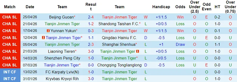 – Thống kê kết quả 10 trận gần nhất của Tianjin
