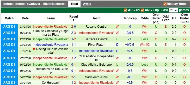Tigre chỉ thắng kèo có 5 trận từ đầu mùa, đứng ở lưng chừng BXH. Trong khi Independiente Rivadavia là đội có tỷ lệ thắng kèo cao nhất giải với 9/11 trận. Mức chấp 1/4 nhìn chung thiếu tin cậy với đội chủ nhà trận này.