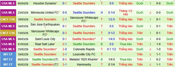 + Seattle Sounders thắng 13 thua 3 hòa 4 trong 20 trận gần nhất trên các mặt trận.