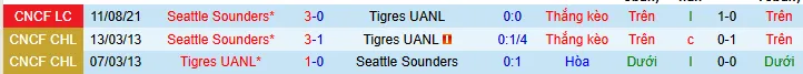 + 3 lần đối đầu trước đây, Tigres UANL thắng 0 hòa 1 thua 2 trước Seattle Sounders theo kèo châu Á.