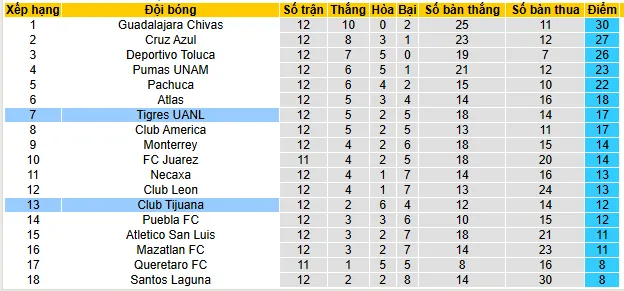 Tijuana đang có 12 điểm sau 12 vòng đấu và đứng thứ 13 trên bảng xếp hạng. Trong khi đó đội khách Tigres đang có 17 điểm và xếp thứ 7 trên BXH.