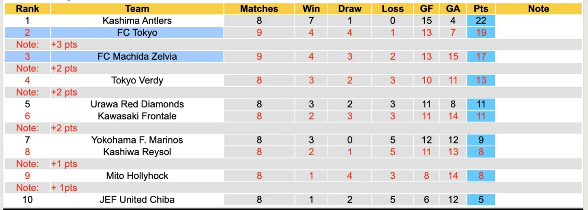 Ở phần sân đối diện, Tokyo mùa trước chỉ cán đích tại vị trí thứ 11 trên bảng xếp hạng. Nhưng mùa này đội chủ nhà đang có khởi đầu không hề tồi chút nào khi 8 vòng đấu đã qua chỉ nếm 1 thất bại và hiện đang xếp ngay trên tối thủ.