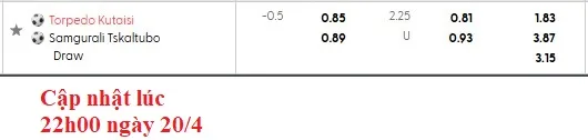 Nhận định soi kèo Torpedo Kutaisi vs Samgurali Tskaltubo, 0h00 này 22/4 – Giải VĐQG Gruzia. Phân tích tỷ lệ kèo, dự đoán kết quả Torpedo Kutaisi đấu vs Samgurali Tskaltubo chuẩn xác từ chuyên gia BongdaNET.