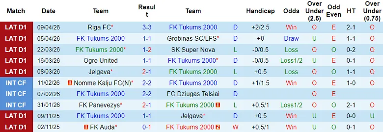 – Thống kê kết quả 10 trận gần nhất của Tukums 2000