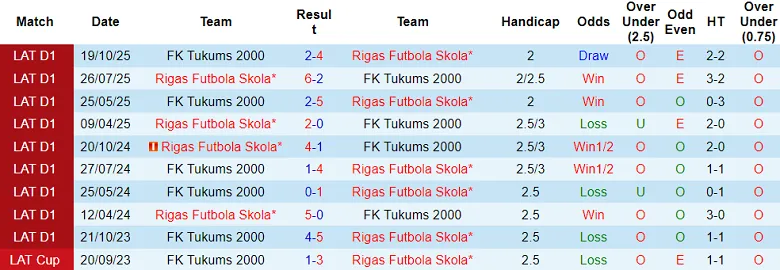 Chín trong số 10 thất bại trên sân nhà thuộc giải VĐQG Latvia của Tukums 2000 trước RFS có cách biệt từ 2 bàn trở lên. Tukums 2000 thực sự khó trở thành phương án mang tới nhiều niềm tin.