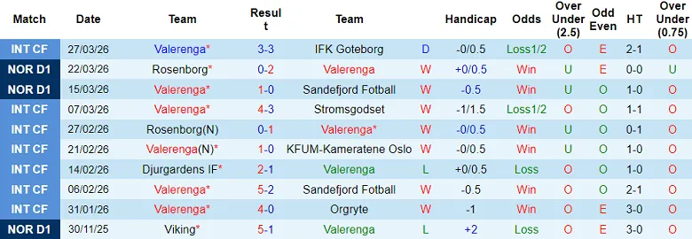 – Thống kê kết quả 10 trận gần nhất của Valerenga
