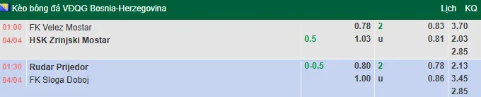 Dự đoán tỷ lệ bóng đá, soi kèo Velez Mostar vs Zrinjski Mostar