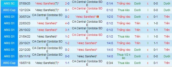 + Velez Sarsfield thắng 3 thua 1 trong 4 trận gần nhất đón tiếp Central Cordoba theo kèo châu Á.