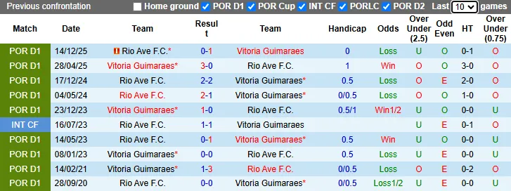 Lịch sử đối đầu Vitoria de Guimaraes vs Rio Ave