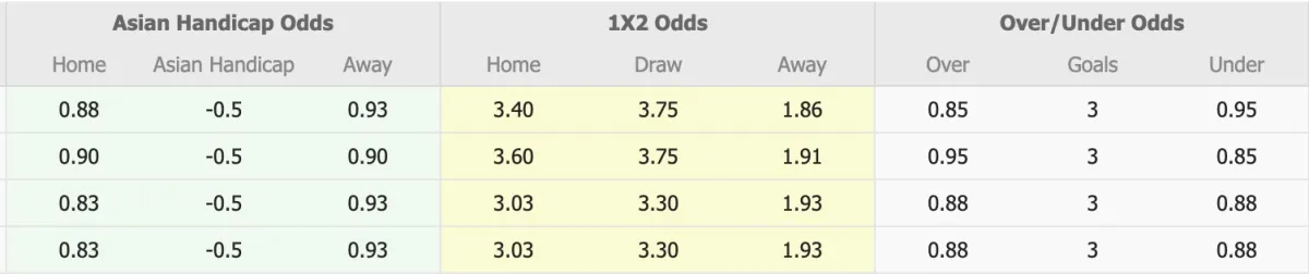 Trong 4/5 lần đối đầu gần nhất giữa hai câu lạc bộ đều diễn ra mãn nhãn người hâm mộ khi mỗi trận đều có tổng số từ 3 đến 5 bàn. Nhà cái đưa ra mức Tài Xỉu là 3, có lẽ họ cũng đang nhận định đây sẽ là một ngày thi đấu tưng bừng bàn thắng, kèo Tài có thể sẽ là chọn lựa không tồi.