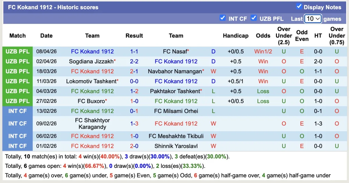 -Thống kê phong độ 10 trận đấu gần nhất của Kokand 1912