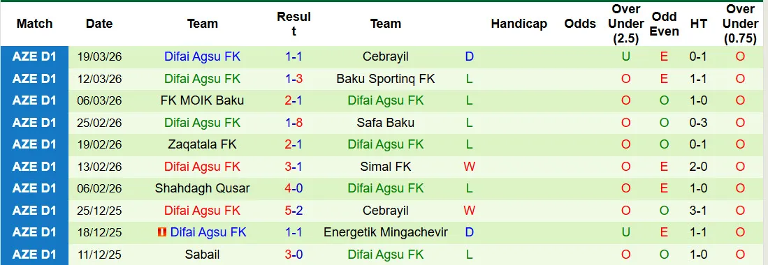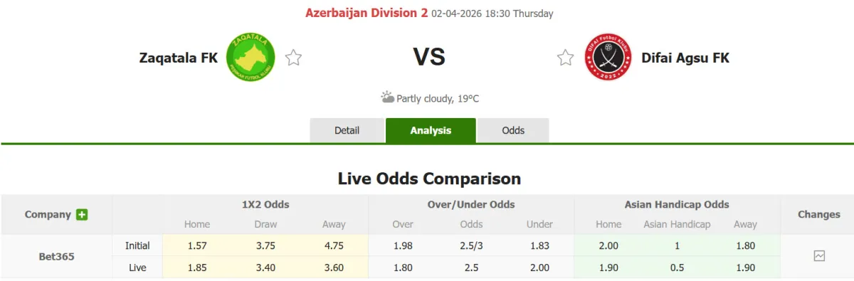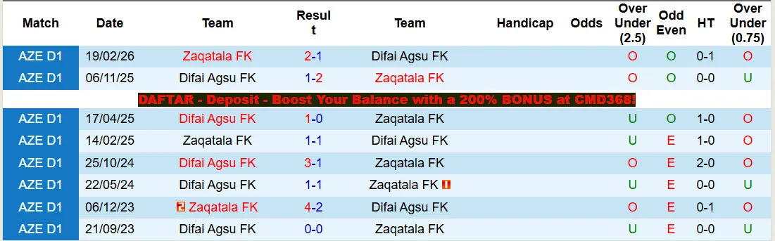 Zaqatala FK thắng kèo 2/3 trận sân nhà mới đây có cược chấp châu Á. Difai Agsu để thua kèo cả 2 trận sân khách vừa rồi có trên sàn giao dịch châu Á.