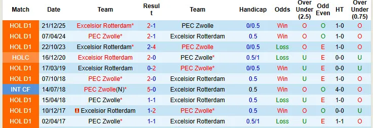 Zwolle thắng kèo tới 5/7 trận đấu mới đây chạm mặt Excelsior. Zwolle bất bại kèo tới 9 trong số 12 trận đấu gần nhất. Excelsior không thắng kèo tới 6/7 trận đấu vừa rồi tại giải VĐQG Hà Lan.