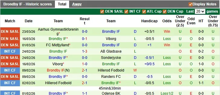 Thống kê phong độ 10 trận đấu gần nhất của Brondby
