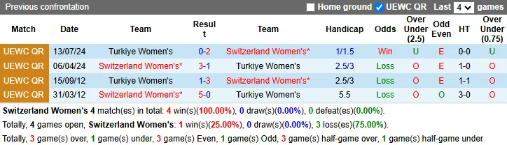 Thống kê phong độ, lịch sử đối đầu Nữ Thụy Sĩ vs Nữ Thổ Nhĩ Kỳ