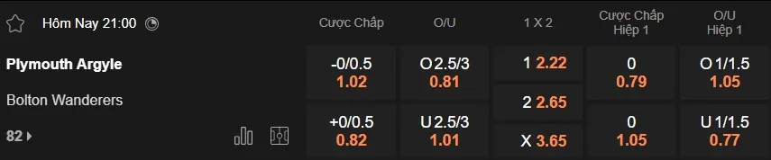 Sàn giao dịch châu Á ghi nhận mức kèo 0:0, tỷ lệ mà ở trận đối đầu gần nhất xuất hiện đã chứng kiến chiến thắng dành cho Bolton. Tuy nhiên, kịch bản này có thể thay đổi khi Plymouth bước vào trận đấu này với thành tích ấn tượng khi thắng kèo châu Á 7/10 trận gần đây so với 3 trận liên tiếp thua kèo của Bolton.