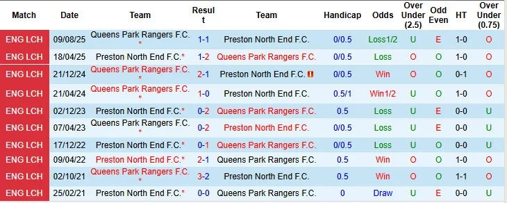 5/7 trận đối đầu vừa qua giữa Preston North End và Queens Park Rangers có không quá 2 bàn/trận. 5/8 trận đấu sân khách mới đây của Queens Park Rangers cũng có không quá 2 bàn/trận.