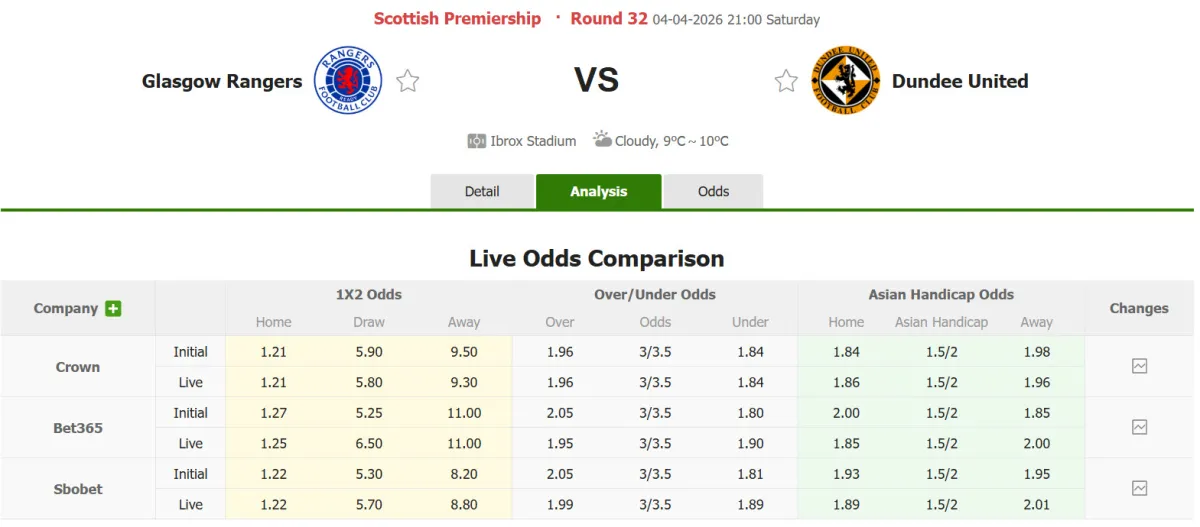 Nhận định soi kèo Rangers vs Dundee United, 21h00 ngày 4/4 tại VĐQG Scotland. Phân tích tỷ lệ kèo, dự đoán kết quả Rangers đấu với Dundee United từ tỷ lệ châu Âu, châu Á qua các chuyên gia hàng đầu.