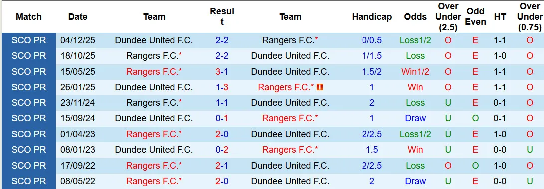 Rangers không thắng kèo tới 5/7 trận đấu mới đây chạm mặt Dundee United. Rangers chỉ thắng kèo có 1 lần ở 5 trận đấu gần nhất. Dundee United thắng kèo cả 3 trận đấu mới đây tại giải VĐQG Scotland.
