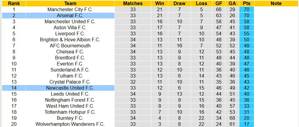 Thống kê phong độ, lịch sử đối đầu của Arsenal vs Newcastle