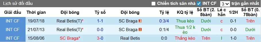 Lịch sử đối đầu Braga vs Real Betis