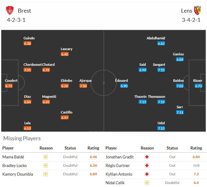 Thông tin lực lượng và đội hình dự kiến Brest vs Lens