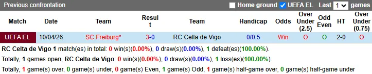 Lịch sử đối đầu Celta Vigo vs Freiburg