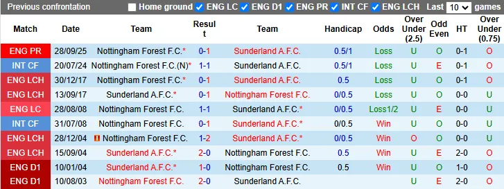 Lịch sử đối đầu Sunderland vs Nottingham Forest