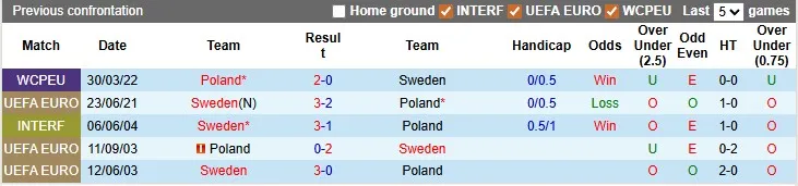 Thống kê phong độ, lịch sử đối đầu của Thụy Điển đấu vs Ba Lan