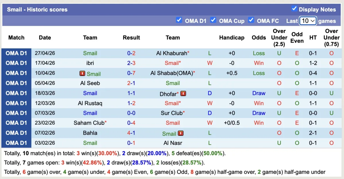 Trong trận đối đầu lượt đi, Smail đã có chuyến hành quân xa nhà thua tâm phục khẩu phục với tỉ số 0-3. Trên bản xếp hạng giải VĐQG Oman đến thời điểm hiện tại, đội bóng này đang chỉ sở hữu 22 điểm và đứng thứ 8 BXH.