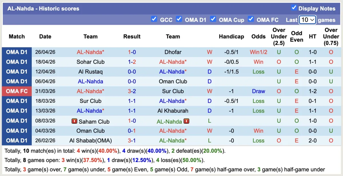 -Thống kê phong độ 10 trận đấu gần nhất của AL-Nahda