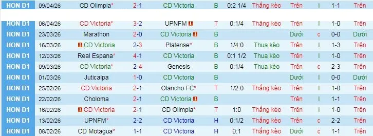 + CD Victoria thắng 8 trong 11 trận gần đây có mở kèo châu Á.