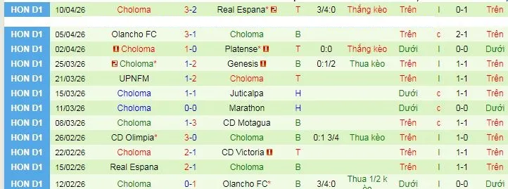 + Choloma thắng 4 hòa 5 thua 11 trong 20 trận gần nhất trên các mặt trận.