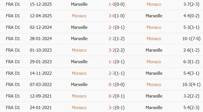 Thống kê phong độ, lịch sử đối đầu của AS Monaco vs Marseille