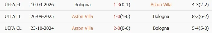 Lịch sử đối đầu Aston Villa vs Bologna