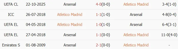 Thống kê phong độ, lịch sử đối đầu của Atletico Madrid vs Arsenal