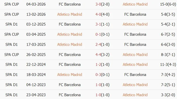 Thống kê phong độ, lịch sử đối đầu của Atletico Madrid vs Barcelona