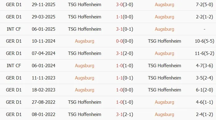 Thống kê phong độ, lịch sử đối đầu của Augsburg vs Hoffenheim