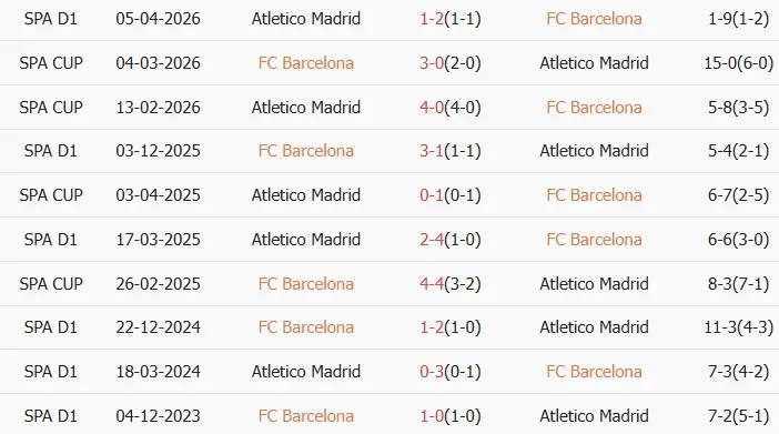 Lịch sử đối đầu giữa Barcelona và Atletico Madrid cũng là một yếu tố quan trọng cần xem xét khi dự đoán kết quả trận đấu.
