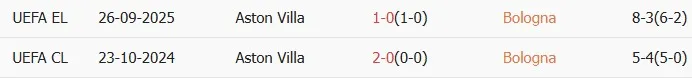Lịch sử đối đầu Bologna 1909 vs Aston Villa
