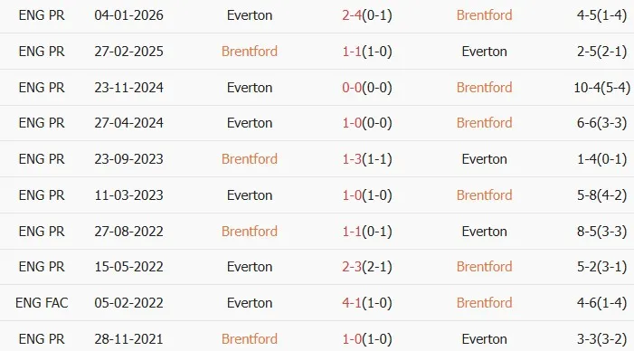 Thống kê phong độ, lịch sử đối đầu của Brentford vs Everton