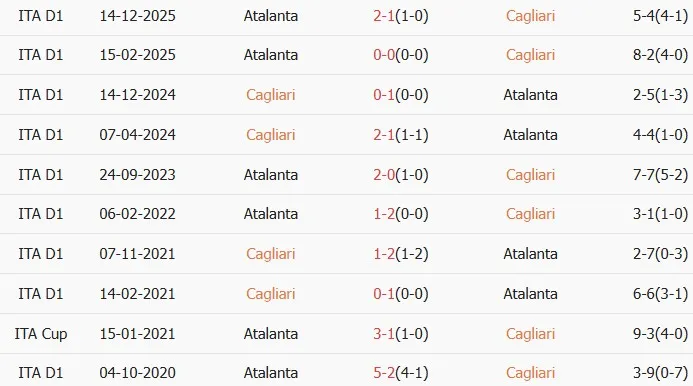 Thống kê phong độ, lịch sử đối đầu của Cagliari vs Atalanta
