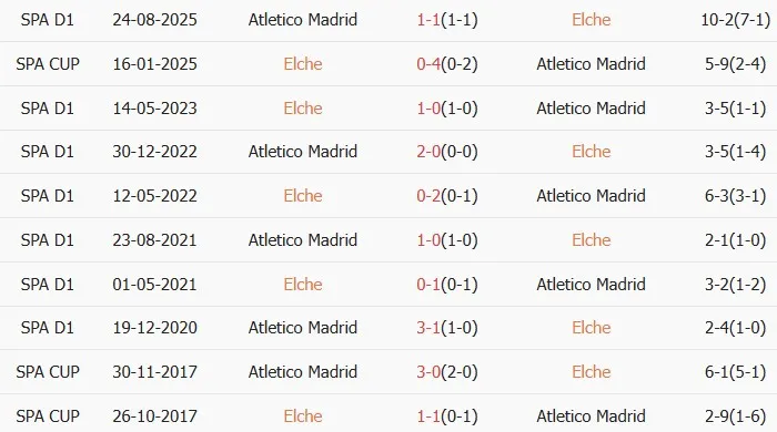 Thống kê phong độ, lịch sử đối đầu của Elche vs Atletico Madrid