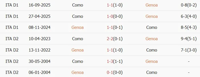 Thống kê phong độ, lịch sử đối đầu của Genoa vs Como