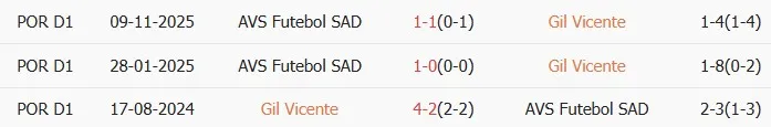 Lịch sử đối đầu Gil Vicente vs AVS Futebol SAD