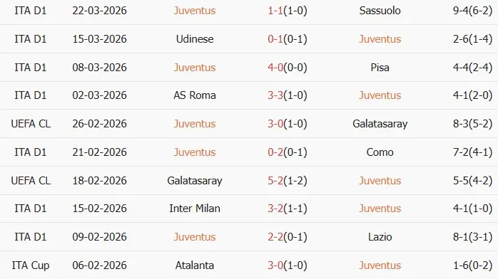 Thống kê phong độ 10 trận đấu gần nhất của Juventus cho thấy sự ổn định và sức mạnh của họ.