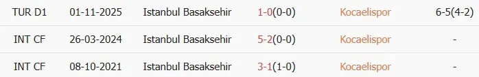 Lịch sử đối đầu Kocaelispor vs Istanbul Basaksehir