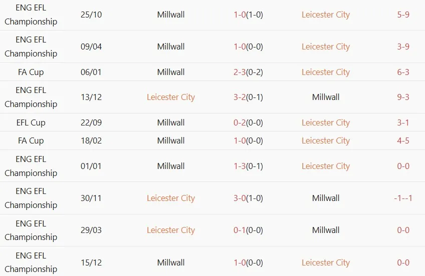 Thống kê phong độ, lịch sử đối đầu của Leicester City vs Millwall
