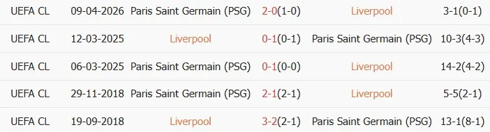 Thống kê phong độ, lịch sử đối đầu của Liverpool vs Paris Saint-Germain
